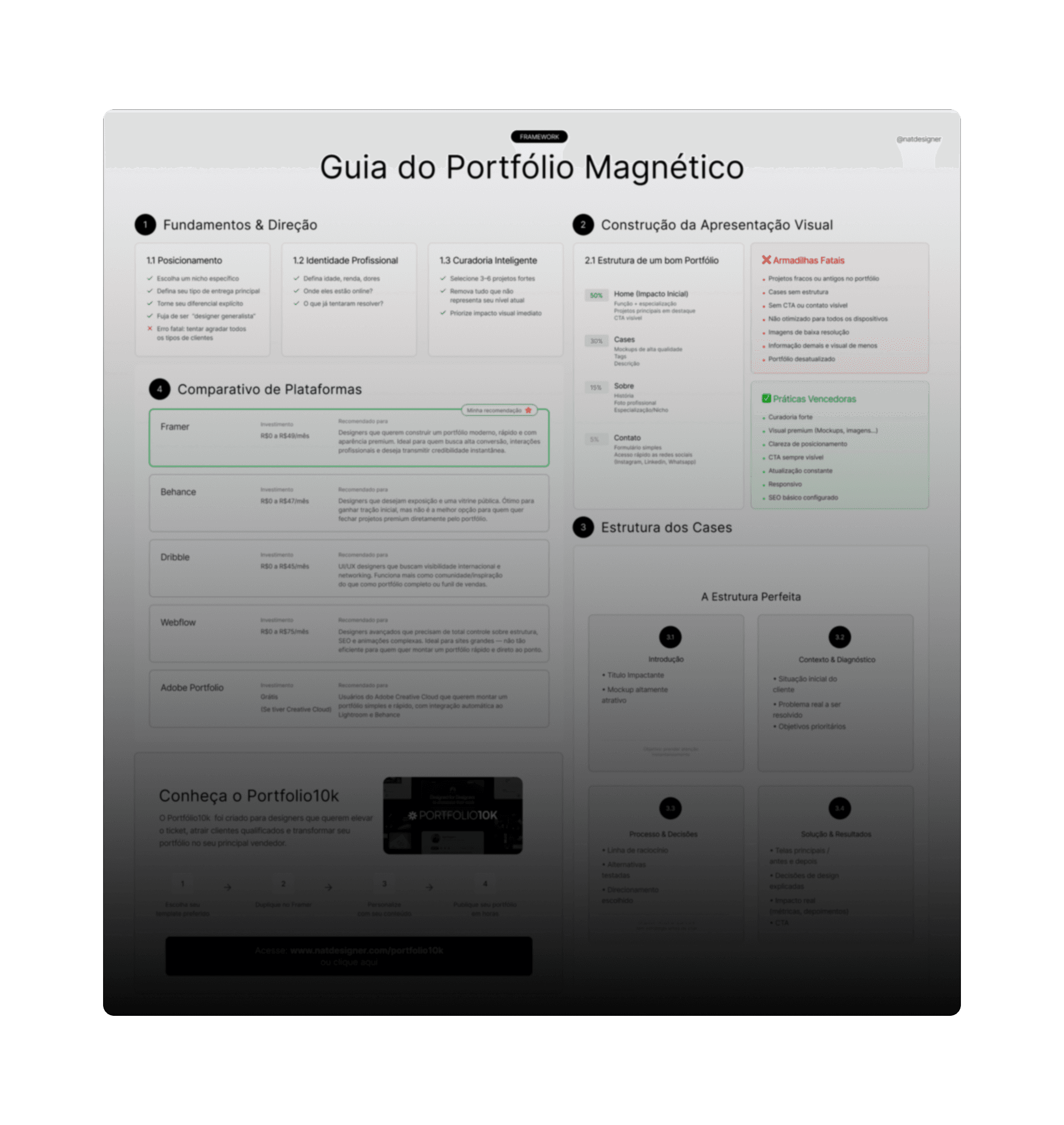 Esse é um guia gratuito e prático para designers que querem montar um portfólio profissional, de forma rápida e capaz de atrair clientes melhores.